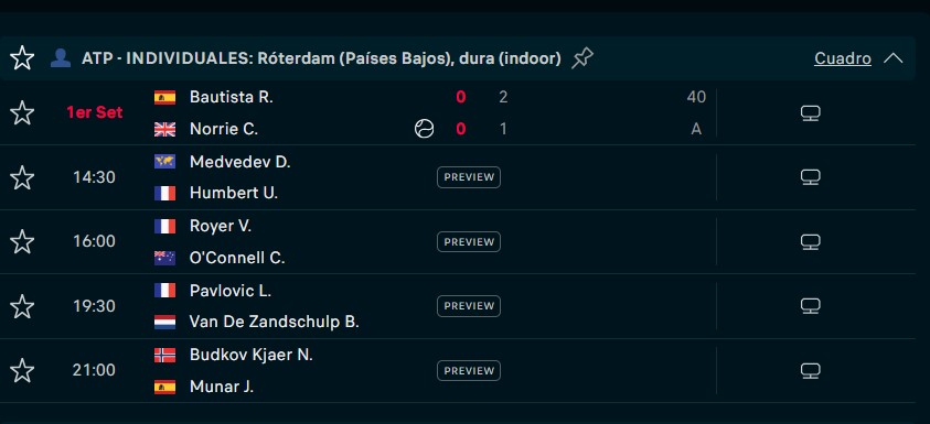 13:00 | Roberto Bautista Agut vs. Cameron Norrie [6]: Un duelo de resistencia y táctica. El español busca imponer su solidez ante el británico, sexto cabeza de serie.